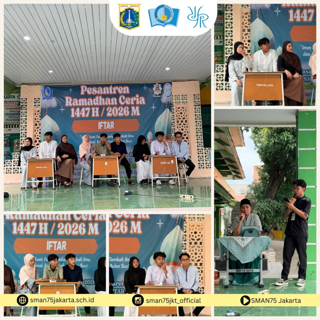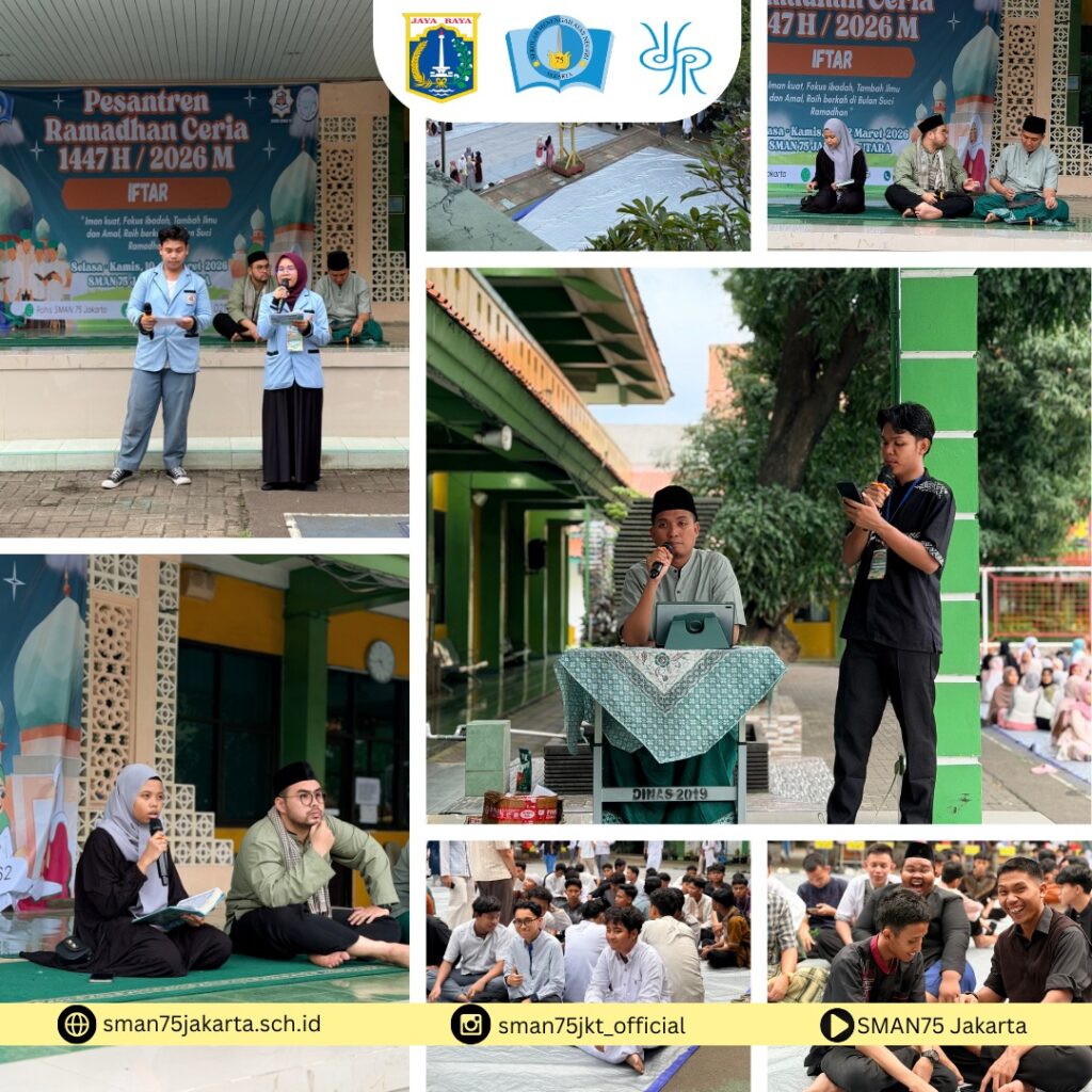 JAKARTA – Keluarga besar SMAN 75 Jakarta sukses menyelenggarakan penutupan rangkaian kegiatan Pesantren Kilat (Sanlat) pada Kamis, 12 Maret 2026. Memasuki hari ketiga sekaligus hari terakhir, acara ditutup dengan serangkaian kegiatan religius yang mempererat kebersamaan antara guru, staf, dan seluruh siswa di lingkungan sekolah.